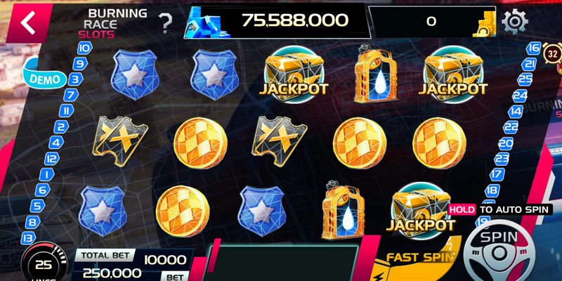 Có đến 31 cách để anh em có thể dành chiến thắng tại Burning Race hấp dẫn. Điển hình là khi sưu tầm được 5 biểu tượng Jackpot trên cùng một dòng, đồng nghĩa với việc nổ hũ lớn và trực tiếp nhận thưởng.