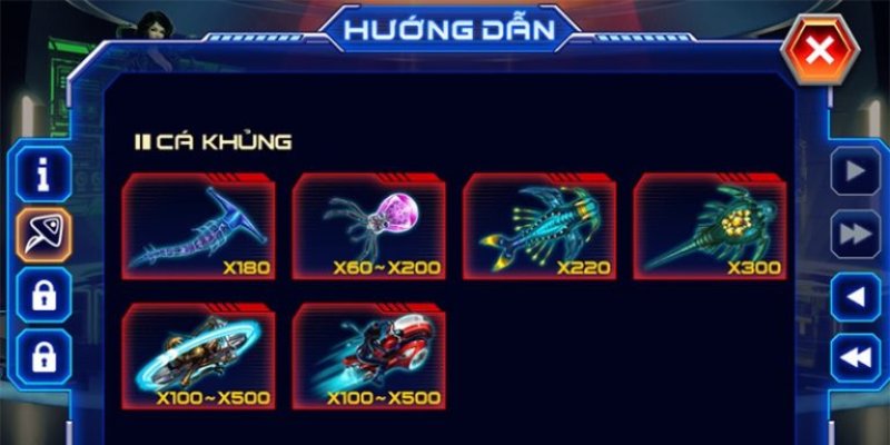 Đây là loại có có lượng máu rất trâu nên muốn tiêu diệt nhanh chóng bạn cần mất nhiều đạn. Thế nhưng khi đã hạ gục được cá khủng thì mức thưởng bạn nhận về là rất cao. Cá khủng có tất cả là 6 loài khác nhau. Trong đó, hệ số điểm cao nhất là ×500 và ×80 là hệ số điểm thấp nhất.